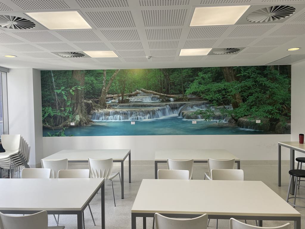 Studies have shown that visual art can significantly affect a patient's health outcomes. Wallpaper murals with serene and natural scenes can reduce stress and anxiety, lower blood pressure, and even decrease the need for pain medication.